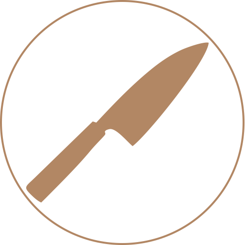 Cuchillo de chef de perfil japonés. Versátil para carnes, verduras y pescado; rinde muy bien en push-cut y cortes largos.